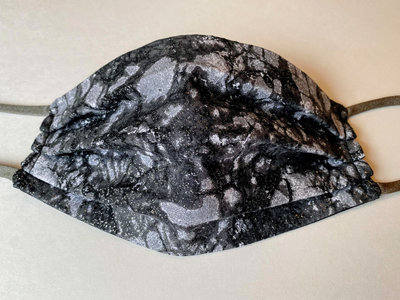 Reversible cotton face mask (adult size) made by Buick Audra and a digital download of the "STONECHILD / YRIO" single. The mask has a layer of fine silver sparkle on the front; the backside is solid black.